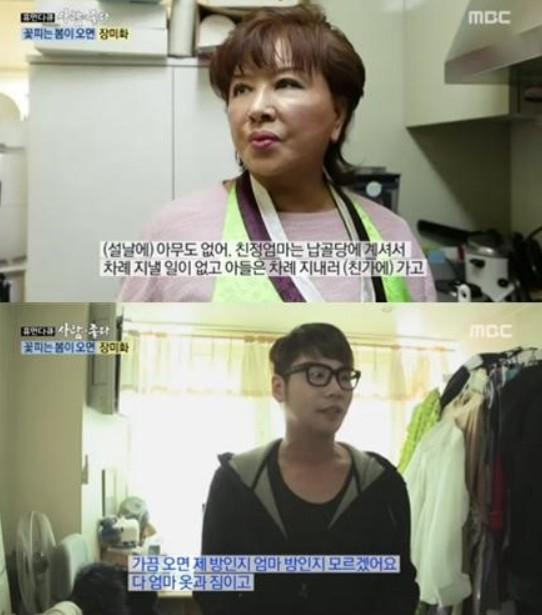 장미화는 오늘 27일 방송된 MBC '휴먼 다큐 사람이 좋다'(이하 사람이 좋다)'에서 올로 떡국을 먹던 장미화는 아들이 온다는 소식에 아들만을 위한 진수성찬을 준비하는 장면이 전파를 탔다.