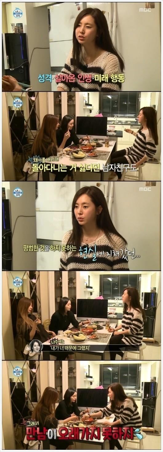 이어 한채아의 친구는 "연애할 때 몰래 데이트 하는 게 불편하지 않나"라고 물었다. 한채아는 "내가 불편한 것보다 자기도 돌아다니는 거 안 좋아한다고 하다가 시간이 지나면 나 때문이라고 하더라"라고 답했다.