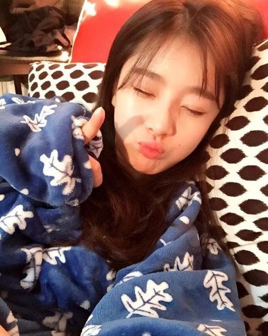 공개된 사진 속 벤은 나뭇잎 문양의 수면잠옷을 입고 침대에 누워 눈을 감은 채 입은 앙 오므리며 귀여운 포즈를 취하고 있다.