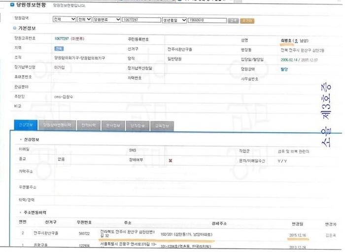 최 예비후보는 “당원정보현황에 등재된 주소지는 2007년 12월 당시 거주지가 아닌 2009년 5월부터 2011년 7월까지 거주했던 '은평구 역촌동'이고 그 조차도 2013년 12월부 날짜로 기재되어 있다"며 “새누리당은 이미 탈당한 자의 주소지까지 추적하면서 사후 관리한다는 모순을 드러내고 있다”고 꼬집었다.