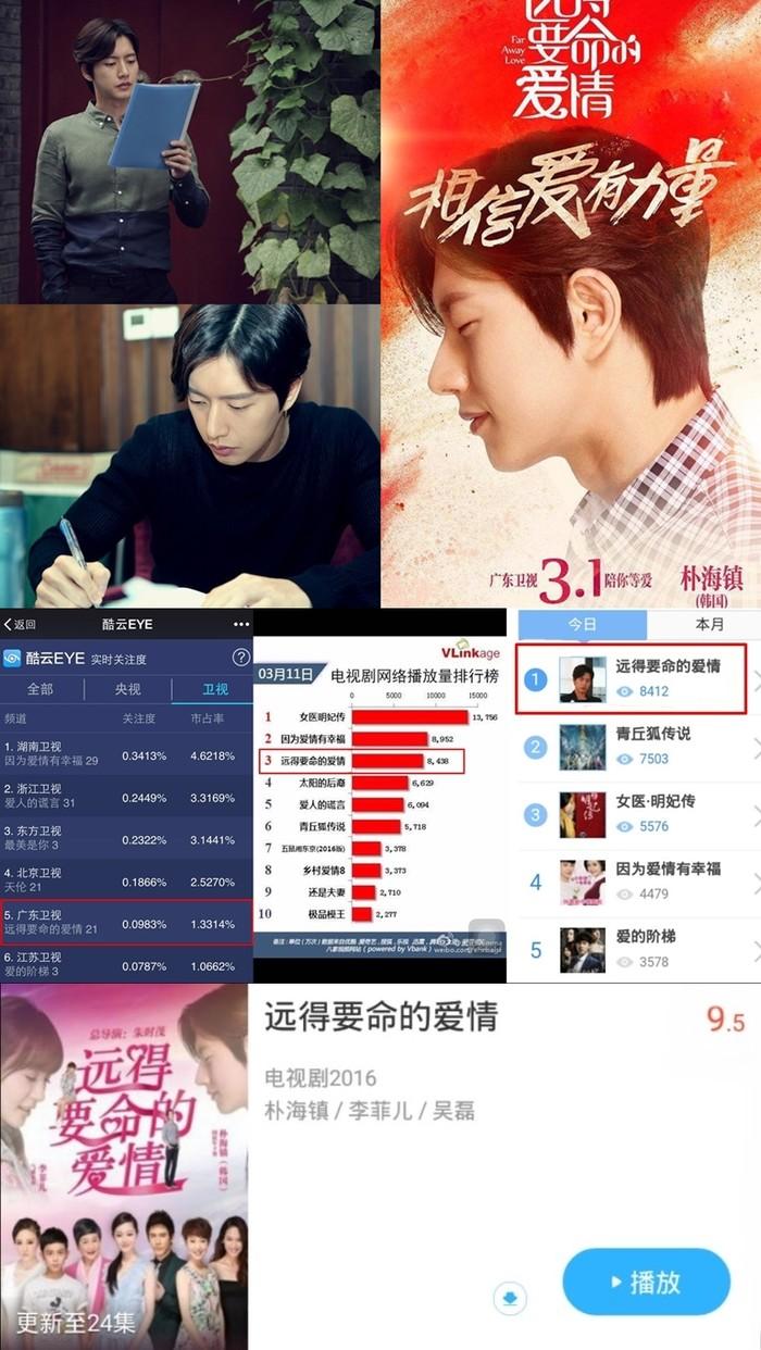 박해진이 출연한 중국드라마 '멀리 떨어진 사랑'은 지난해 3월 1일 광동위성과 동남위성에서 첫 방송된 후 식을줄 모르는 시청률 상승세를 보이며 중국 안방극장을 점령했다.