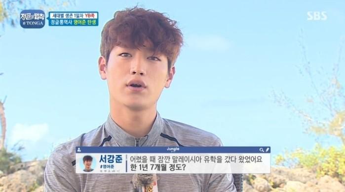최근 인기리에 종영된 '치인트'의 서강준이 25일 방송된 SBS '정글의 법칙 in 통가'에서는 YB족과 OB족으로 나뉘어 세대별 생존에 나선 병만족의 모습이 공개한 것.