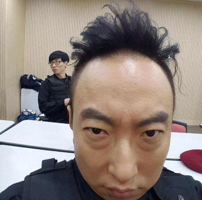 이 모습을 접한 네티즌들은 "머리카락이 화났어요" "앵그리버드" "어쩐지 재석이 형이 빛난다" 등의 반응을 남겼다.