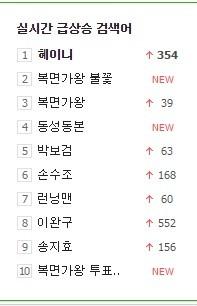 혜이니는 얼굴이 공개된 직후 포털사이트 검색어 1위.'복면가왕 불꽃'이 2위에 이름이 잇따라 오르며 관심을 집중시켰다.