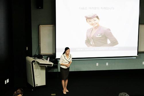 특강을 진행하는 홍승미 원장은 인하공업전문대학 항공운항과를 졸업, 대한항공에서 10년 간 객실 승무원으로 기내 서비스와 신입 객실 승무원 훈련 교관을 역임했다.