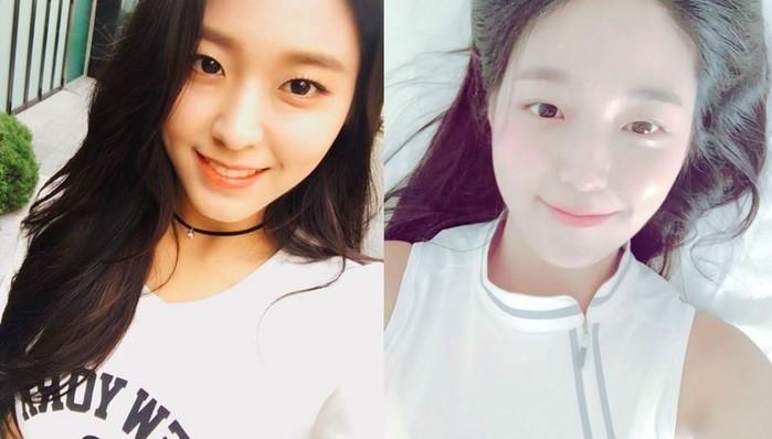 오른쪽에 있는 설현의 사진은 피부는 굉장히 새하얗게 나온 반면에 각도에 따라 이목구비가 다소 밋밋해보여 설현의 또 다른 이미지가 드러났다.