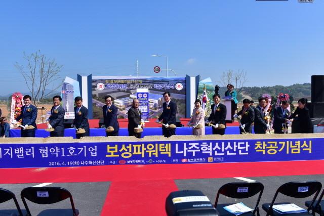 이날 행사에는 임도수 보성파워텍 회장, 조환익 한전사장, 이낙연 전남도지사, 지역 국회의원(손금주,신정훈), 강인규 나주시장, 임수경 한전 KDN 사장과 200여명의 지역 주민들이 참여했다.
