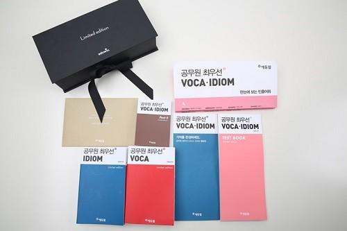 ‘공무원 최우선 보카/이디엄 업그레이드 한정판’은 공무원 영어 시험에서 꼭 알아두어야 할 필수어휘를 수록한 ‘공무원 최우선 보카’와 필수 숙어가 수록된 ‘공무원 최우선 이디엄’ 외에 학습한 단어를 복습할 수 있는 ‘공무원 최우선 TEST BOOK’, 빈출단어를 한눈에 볼 수 있도록 브로마이드 형태로 제작한 ‘한 눈에 보는 빈출 어휘’, 학습한 내용을 정리할 수 있는 포스트 잇으로 구성돼 있다.