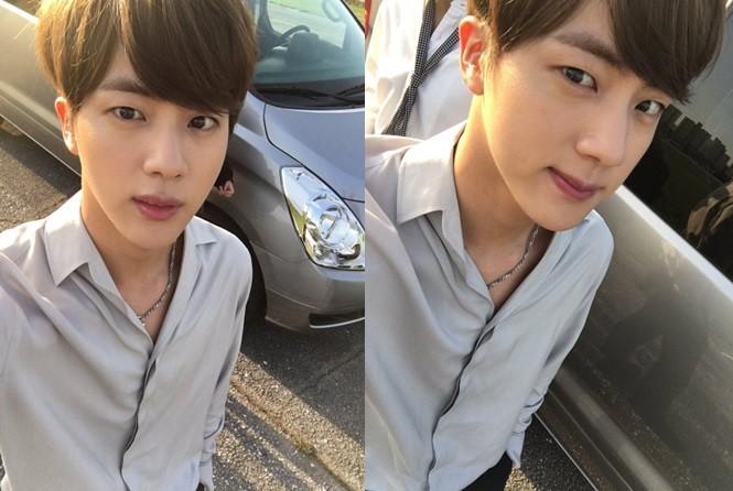 진은 근접한 셀카임에도 선명한 이목구비와 훤칠한 자태로 보는 이들의 시선을 사로잡았다.