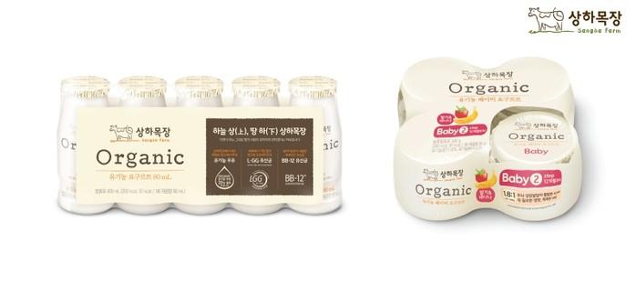 | ▲ 상하목장 유기농 요구르트(왼쪽)와 상하목장 유기농 베이비 요구르트 딸기&바나나. | ||