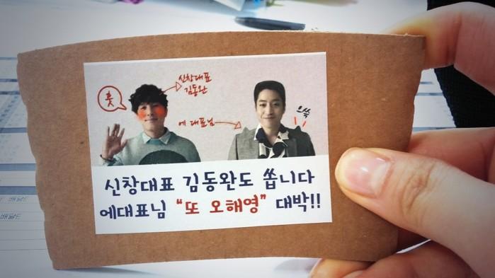 사진 속에는 에릭의 얼굴이 새겨진 커피 홀더를 들고 있는 서현진의 손이 나타나 있다. 에릭의 다소 촌스러운 머리 스타일이 눈에 띈다.