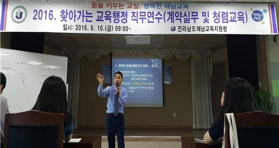 또한 안병윤 사무관(전라남도교육청 감사담당관실 청렴팀)으로부터‘청렴 및 부당청탁금지법’에 대한 청렴교육으로 계약담당공무원으로서의 갖춰야 할 자질과 책임의식에 대한 소양교육도 병행했다.