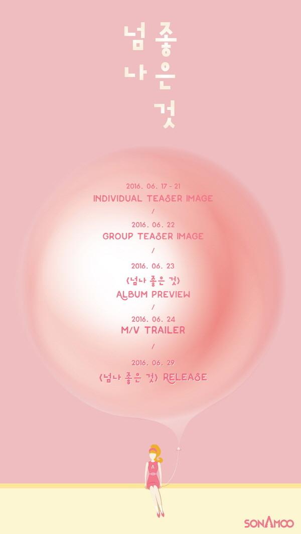 공개된 스케줄에 따르면 오는 6월 17일, 20일, 21일까지 세 차례에 걸쳐 멤버별 티저 이미지가 공개되고, 22일 단체 티저 이미지, 23일 수록곡 하이라이트, 24일 뮤직비디오 트레일러를 마지막으로 29일 대망의 세 번째 미니앨범 '넘나 좋은 것'이 발매된다.