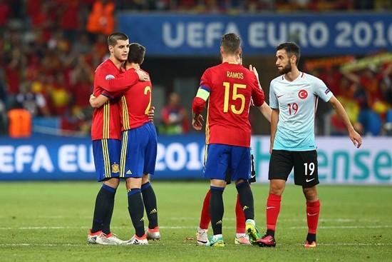 스페인이 터키와의 경기에서 3-0으로 완파하며 유로 2016 16강 진출에 성공했다.