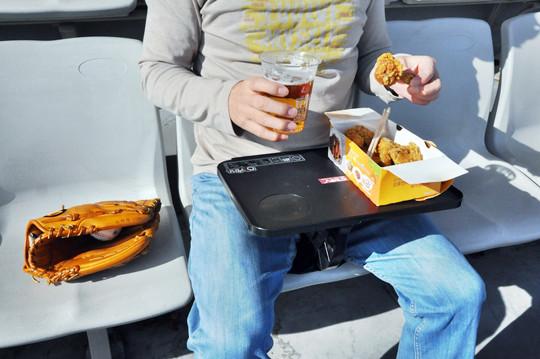 ‘플레이밥상’은 이런 불편을 해결하기 위해 나온 제품으로 기존의 테이블과는 달리 사용자의 하체(엉덩이)로 테이블을 지지하는 구조이기 때문에 별도의 설치 공간이 필요하지 않아 자동차, 경기장 등 좁은 공간에서도 사용할 수 있고 조립과 분해가 간단하여 휴대하기도 편리하다.