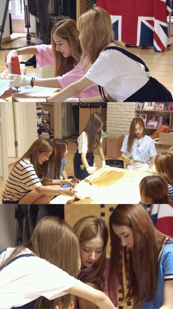 멤버들은 재료를 모두 꺼낸 후 직접 사포를 들고, 상판을 다듬고 드릴을 들고 나사를 박는 등 거친소녀들로 변신한다. 작업 설명 인지 부족과 드릴부족으로 손으로 조립을 하는 등 난항을 겪은 우주소녀가 과연 DIY에 성공할 것인지 팬들의 궁금증을 유발하고 있다.