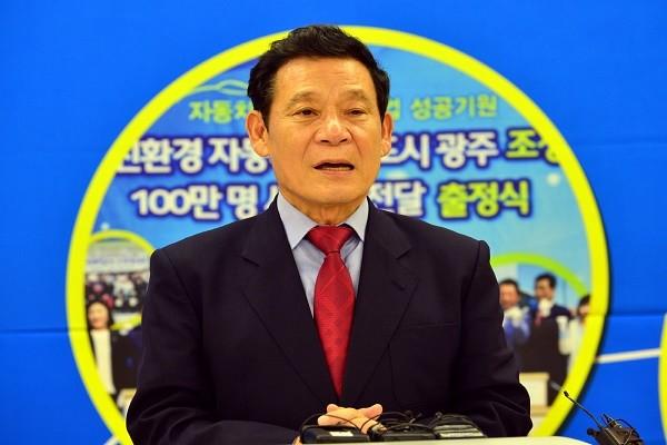 | ▲ 윤장현 광주광역시장(사진)은 8일 오후 열린 기획재정부 재정사업평가자문회의에서 시의 최대 역점사업인‘자동차 100만대 생산기지 조성사업’이 한국개발연구원(KDI)의 예비타당성조사 결과 경제성이 있는 것으로 평가돼 국가사업으로 최종 확정됐다고 밝히고 있다. | ||