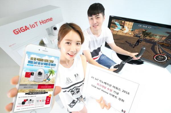 KT는 ‘IoT 이노베이션 어워드 2016’ 최고대상 수상 기념해 진행하는 웹툰 공유 이벤트 외에도 여름 휴가철을 맞아 ‘GiGA IoT 홈’ 서비스 가입 시 할인 혜택이나 경품을 제공하는 이벤트도 진행한다.