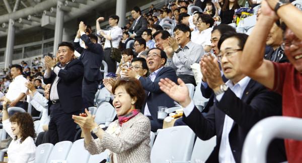 이날 한화이글스는 한화건설과 협력사 임직원들의 응원에 힘입어 7:4의 점수로 승리를 거뒀다.