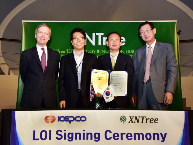 | ▲ (왼쪽부터) 제프리 마운트에반스 런던금융시장, 천재원 엑센트리 코리아 대표, 김동섭 한국전력 전력연구원 원장, 조환익 한국전력 사장 | ||