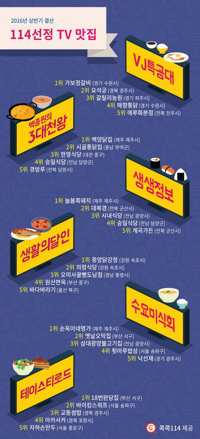 상반기 중 콕콕114에 집계된 TV맛집의 114 안내건수는 총 6만7830건이었다.