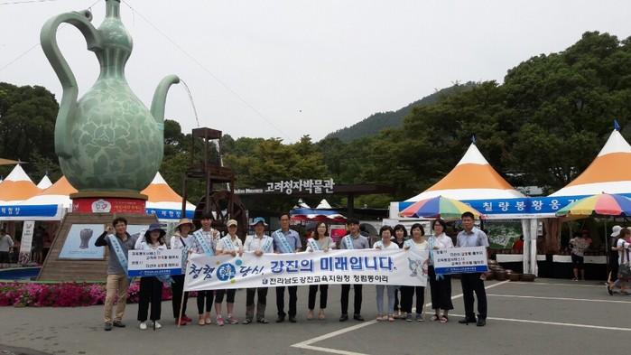 강진교육지원청 관내 일반직공무원으로 구성된 청렴동아리‘바르美 2016’회원들은“청렴韓 당신, 강진의 미래입니다.”라는 현수막을 내걸고 축제장을 방문하는 관광객들을 대상으로 청렴 홍보물을 나누어 주며 강진교육지원청의 청렴하고 투명한 교육행정 실천 의지를 홍보했다.