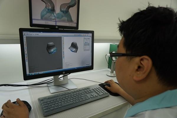 | ▲ 3D 모델링 작업을 통해 귓속형 보청기 부품의 위치를 조정하는 모습 | ||