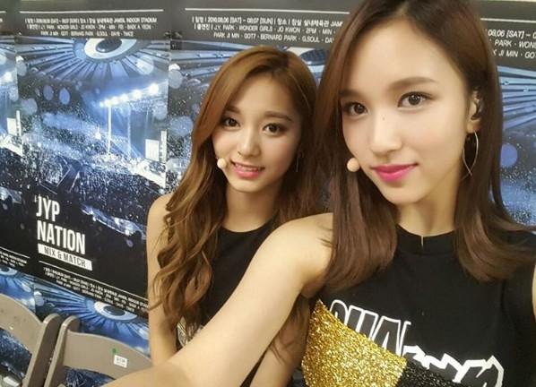 두 사람은 "여러분~!!! 곧 봐요~❤❤❤ #jypnation #2016 #twice"라는 문장과 함께 미소를 지으며 카메라를 보고 있다. 블랙 의상을 맞춰입은 두 멤버의 모습에 다정함이 묻어났다.