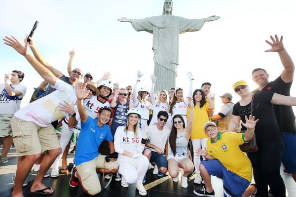 | ▲ 브라질 리우데자네이루의 상징인 예수상 앞에서 관광객들과 함께 하는 5G 리포터들의 모습. | ||