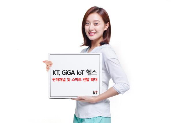 | ▲ KT GiGA IoT 헬스 제품의 광고모델 김지원씨가 GiGA IoT 헬스 제품 판매활동 강화를 위해 도입한 판매채널 다양화, 스마트 렌탈 제도를 소개하고 있는 모습 | ||