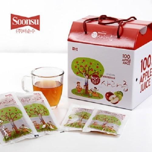 14종의 과즙 중 ‘더순수렛츠미사과즙’은 과채주스 유형으로 국내산 사과과즙과 15brix 이상의 고농축으로 사과 2개가 통째로 함유되어 있다.
