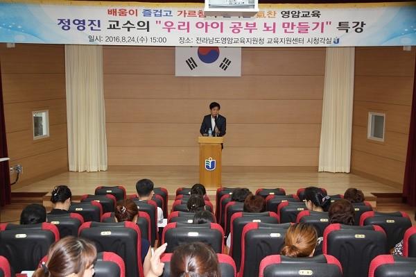 정영진 강사는“뇌의 기능적 구조에 맞게 학습하는 것이 당연한 것인데 지금가지 이를 무시한 채 교육이 이뤄짐으로써 아이들은 교사나 부모에게 이끌려 억지로 공부하는 경우가 많았다.”며, 뇌 과학 연구결과를 교육에 적용하고 뇌의 자연스러운 학습기제를 활성화시켜 잠재력이 빠르게 표출되도록 해야 한다고 말해 큰 관심을 끌었다.