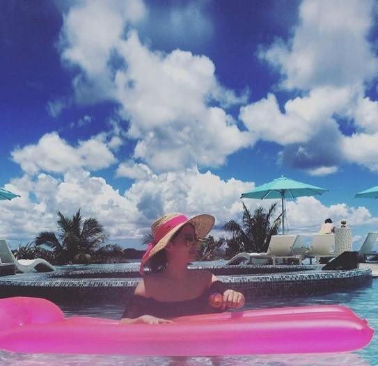 정혜성은 사진 속에서 대형 튜브에 몸을 맡긴 채 수영을 즐기고 있다. 그의 우아한 분위기와 세련된 옷차림이 보는 이들의 시선을 사로잡고 있다.