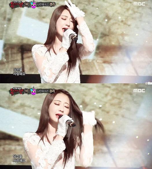 그룹 나인뮤지스 멤버 경리가 4일 방송된 MBC '일밤-복면가왕‘에서 ‘아잉’과 ‘엄마의 일기’를 부르며 가창력을 뽐냈다.