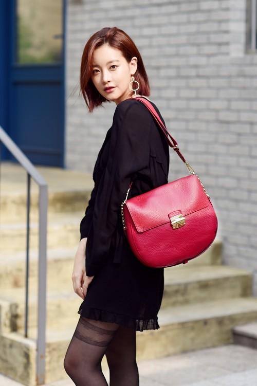또 오연서는 올블랙 패션에 강렬한 오로라 레드 컬러의 미디움 클럽백을 포인트 주어 섹시하고 몽환적인 패션을 완성했다.