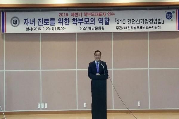 한편 이날 해남교육지원청은 해남문화원에서 꿈․끼를 키우는 행복교육 학부모와 함께 하는 2016. 하반기 학부모 대표자 연수도 가졌다.