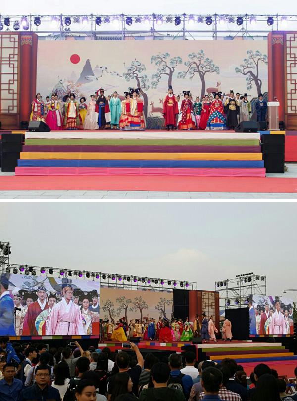 한국 전통 의상 행렬이 이어지자 외국인 관광객 인파가 몰려들면서 행사장 분위기는 열기를 띠었다. 형형색색의 한복을 입은 모델들은 기품 있고 우아한 워킹으로 시선을 사로잡았다.