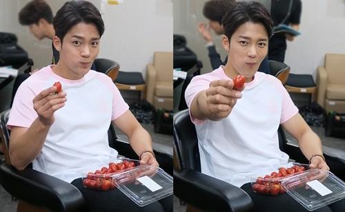사진 속 그는 귀여움이 돋보이는 연분홍 티셔츠를 입고 카메라를 바라보고 있다. 특히 바쁜 스케줄 와중에도 방울토마토를 먹으며 식단조절을 하는 김진우의 모습이 시선을 사로잡았다.
