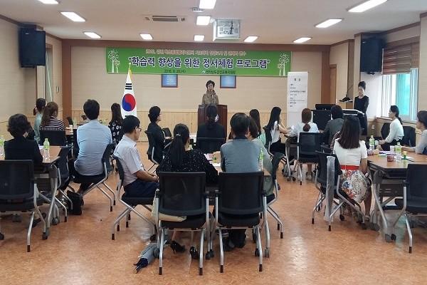 이번 연수는 느린 학습자들에 대한 교사들의 심리적인 이해를 돕기 위해 문곡에듀컨설팅연구소 이영옥 소장을 강사로 초청해‘학습력 향상을 위한 정서체험 프로그램’주제로 진행됐다.