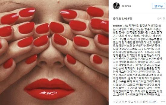 서인영은 자신의 인스타그램에 28일 한 장의 사진을 게재했다. 허나 사진보다는 함께 달려있는 댓글에 더 시선이 집중됐다.