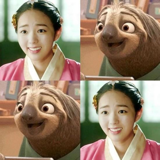 공개된 사진에는 디즈니의 애니메이션 ‘주토피아’에 등장하는 나무늘보와 채수빈의 방송 캡처가 교차로 게시돼있다. 다소 내려간 눈썹과 선해 보이는 눈망울, 귀여운 입 꼬리가 비슷한 인상을 준다.
