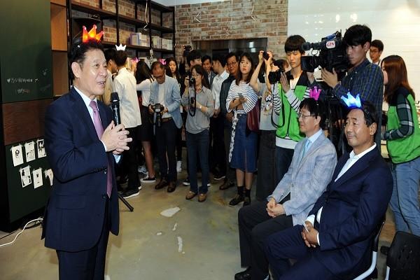 | ▲ 광주광역시가 청소년과 마을주민들의 커뮤니티 공간으로 활용토록 구축한 월산동 마을커퓨니티 1호점 준공식이 지난 9월30일 개최됐다. 사진은 이 자리에 참석한 윤장현 광주광역시장(좌)과 시 관계자 및 시민들 | ||