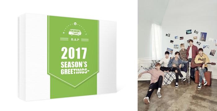 B.A.P의 소속사인 TS엔터테인먼트에 따르면 5일 B.A.P는 시즌 그리팅의 예약판매를 시작한다. 일상 속 힐링 여행이라는 콘셉트를 바탕으로 무대 위 강렬한 카리스마로 팬들의 마음을 사로잡았던 B.A.P가 2017년을 맞아 싱그러운 청춘미를 뽐내는 소년으로 깜짝 변신했다.