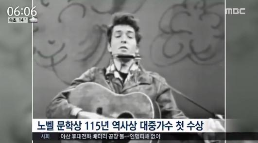 현지시간으로 13일 스웨덴 한림원은 미국의 포크가수이자 싱어송라이터인 밥 딜런이 노벨문학상 수상자가 됐다고 밝혔다.