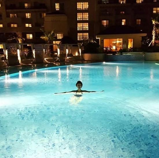 공개된 사진 속 그는 제주도의 한 호텔 수영장에 있는 모습이다. 수영복을 챙겨 입은 그는 사진을 찍어주는 사람을 향해 해맑은 미소를 짓고 있다.