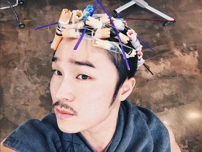 사진 속 그는 남성적인 콧수염과는 상반되게 파마를 하고 있는 모습으로 다채로운 매력을 선보였다.