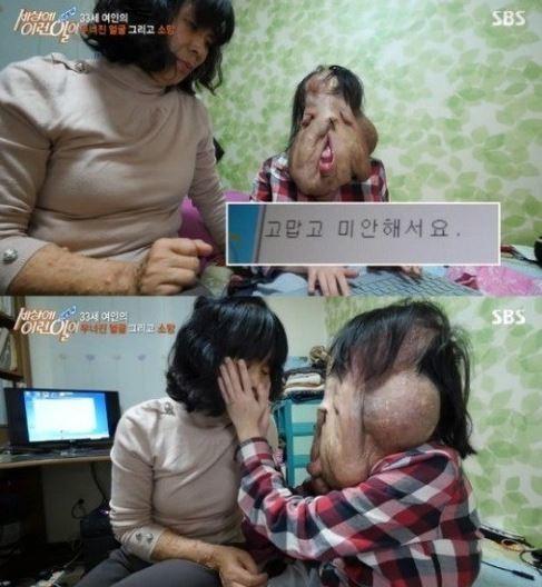 심 모씨의 얼굴은 신경섬유종으로 인해 피부가 모두 무너져내린 상태였다. 심 씨는 "그저 남들과 똑같은 평범한 30대 여자로 살고싶다"고 희망했다.