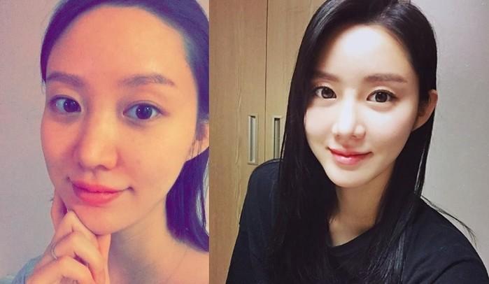 왼쪽 모습에서는 화장을 거의 하지 않은 채 수수한 매력을 뽐내고 있다. 반면 오른쪽의 한그루는 정성들여 화장을 하고 인형같은 미모를 드러내고 있다.
