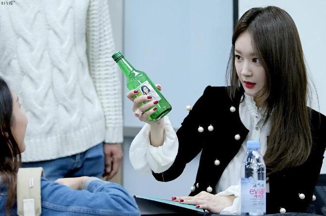 공개된 사진 속 강민경은 청순한 외모를 뽐내며 소주병을 들고있는 모습이다.