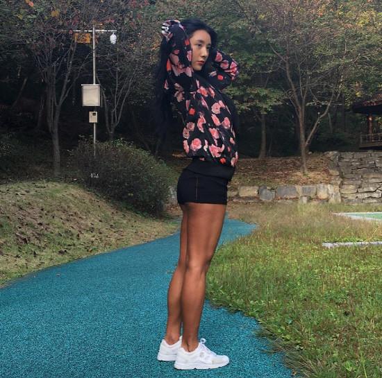 특히 그는 검은색 핫팬츠를 입고 우월한 하체라인을 드러내 시선을 집중시킨다.